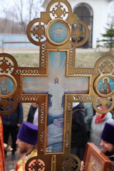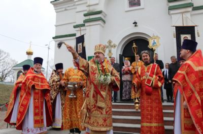 По заамвонной молитве Владыка возглавил пасхальный крестный ход, а также, поздравил настоятеля, духовенство храма и всех молящихся с Великим праздником Светлого Христова Воскресения и обратился с архипастырским словом, в после Владыка отметил, что пасхальное торжество мы начинаем словами «Да воскреснет Бог, и расточатся врази Его, и да бежат от лица Его ненавидящии Его!».