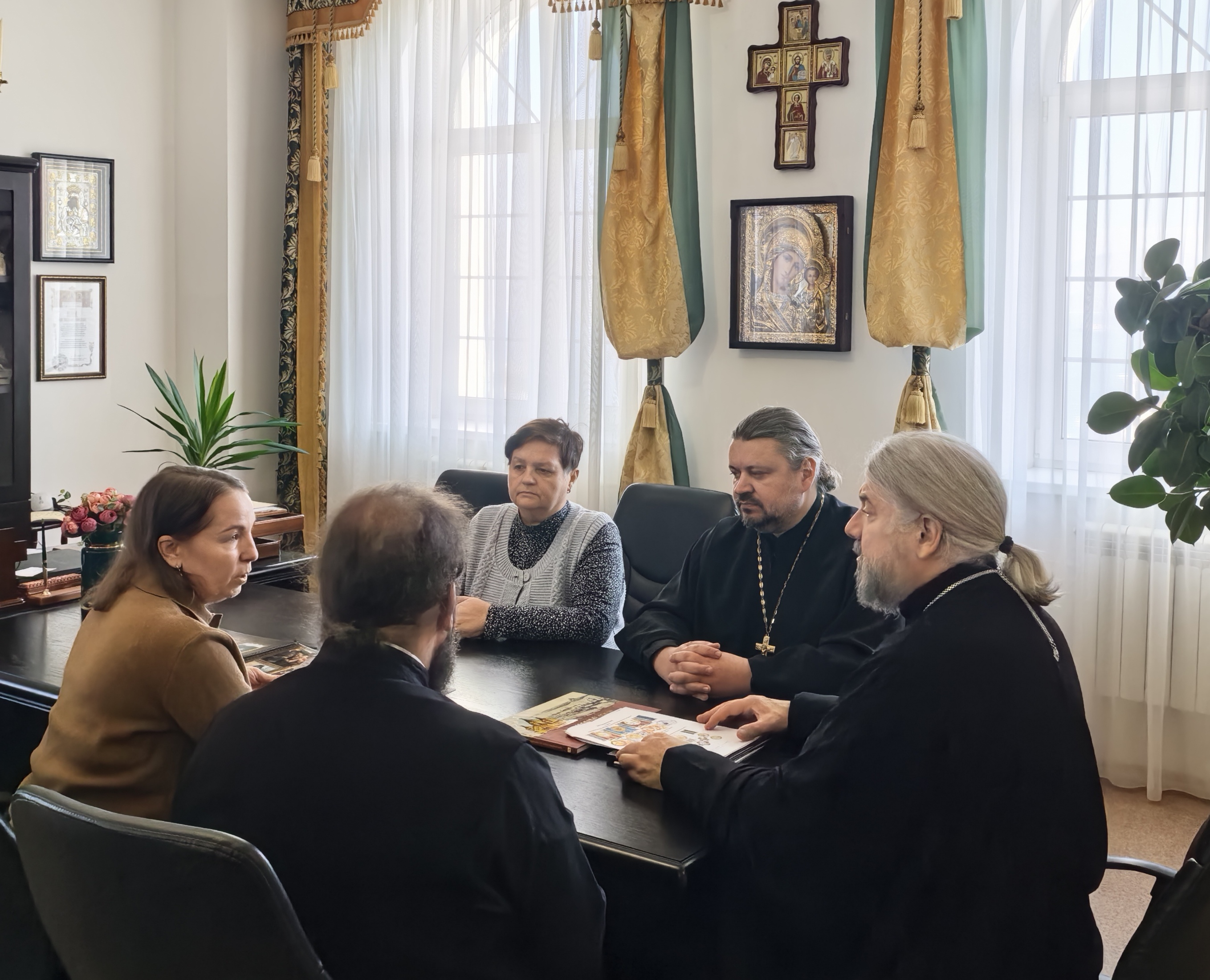 В совещании приняли участие сотрудники информационного и миссионерского отделов, главный бухгалтер и канцелярия Епархии.