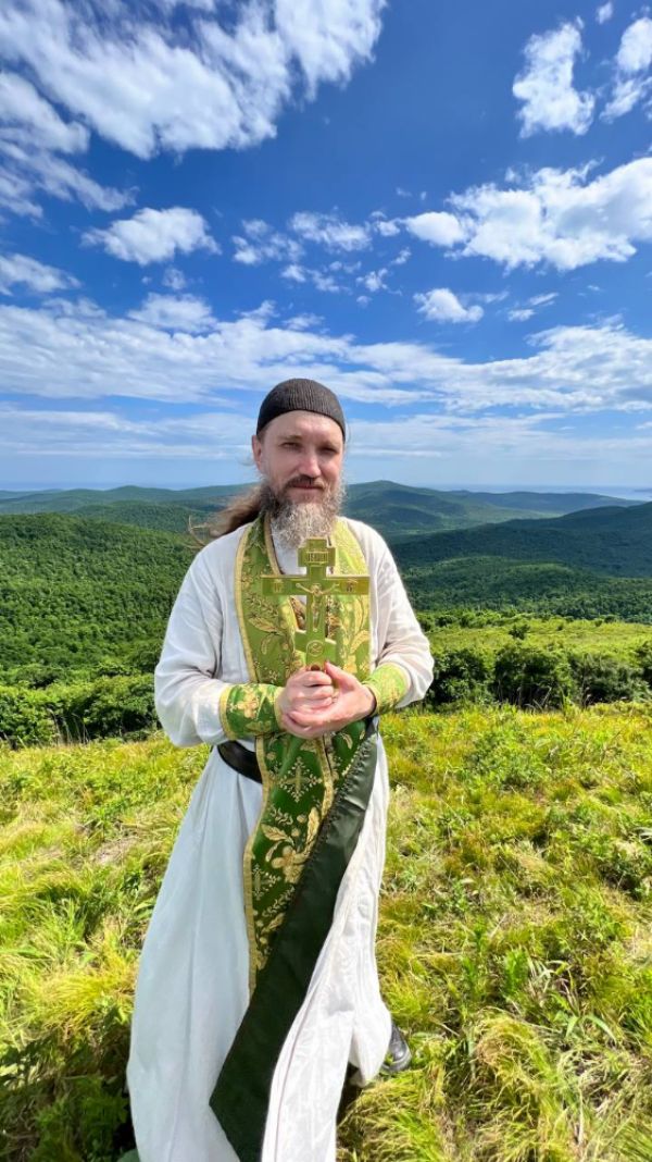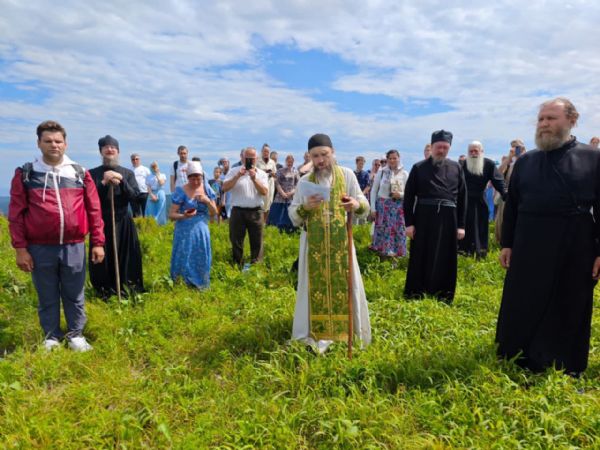 Восхождение завершили молебном с чтением молитвы Всем святым в земле Русской просиявшим. Иконой всех русских святых отец Климент и отец Серафим осенили остров Русский и всех молившихся.