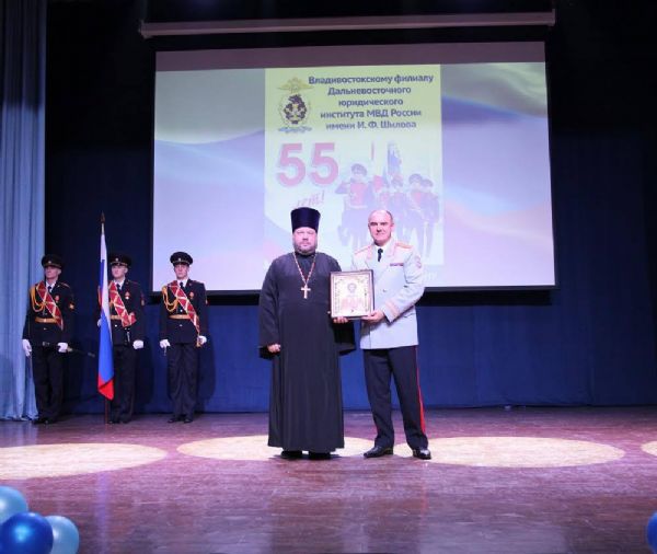 В качестве почетного гостя и духовного наставника также был приглашен иерей Дмитрий Брызгалов, руководитель по взаимодействию с правоохранительными органами Владивостокской епархии. Отец Дмитрий выступил со словом, в котором подчеркнул высокий уровень духовно-нравственного воспитания молодого поколения в данном образовательном учреждении. Священнослужитель пожелал преподавателям и курсантам Божией помощи в службе, крепости душевной и телесной. Батюшка преподнес в дар институту икону св. блгв. князя Александра Невского.
