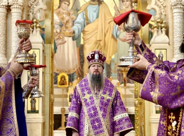 Его Высокопреосвященству сослужили: ключарь собора иерей Максим Точуков, игумен Антоний (Каменчук), иерей Димитрий Винокуров, иерей Александр Соколов, протодиакон Адриан Чунчук и диакон Василий Талько.