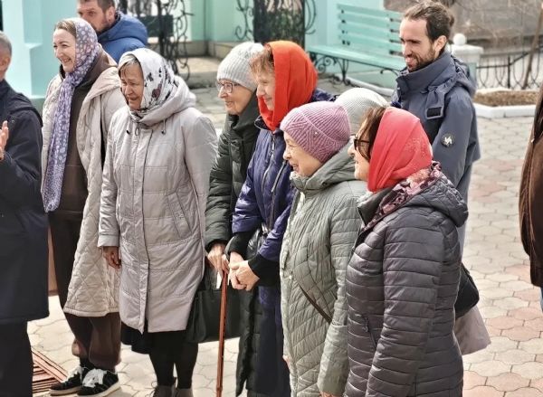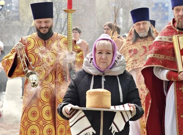 Праздничное богослужение завершилось крестным ходом вокруг храма, во время которого прихожан кропили святой водой.