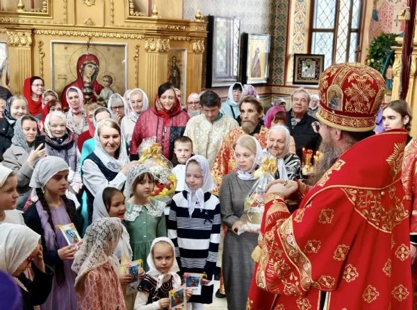 После богослужения воспитанники воскресной школы при храме поздравили духовенство и владыку с праздником Пасхи Христовой.