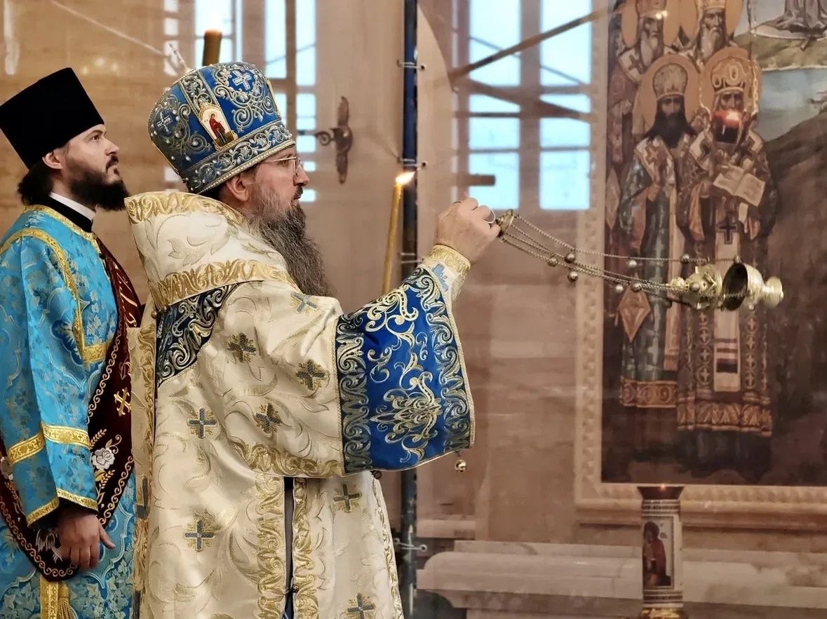 Его Высокопреосвященству сослужили: ключарь собора иерей Максим Точуков, иерей Димитрий Винокуров, иерей Александр Соколов, протодиакон Адриан Чунчук и диакон Василий Талько.