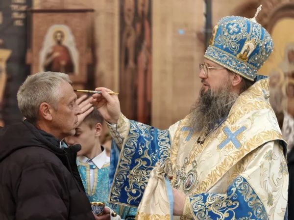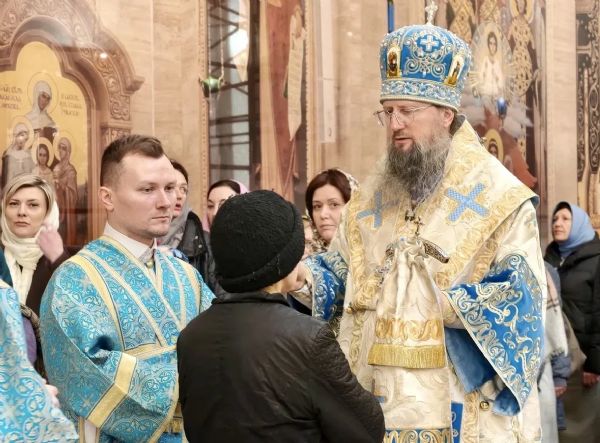 Во время богослужения владыка Павел освятил пять хлебов, вино и елей, а также совершил Елеопомазание, символизирующее Божию милость ко всем, кто приносит покаяние.