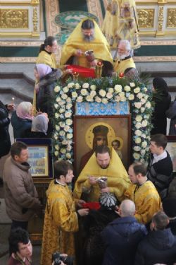 Перед началом богослужения благочинный I округа иерей Димитрий Федорин доставил из аэропорта прибывшую на Приморскую землю святыню – чудотворную икону Божией Матери «Призри на смирение».