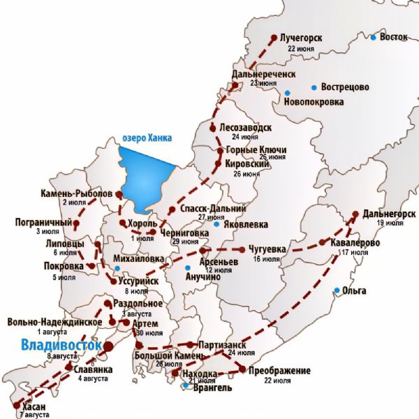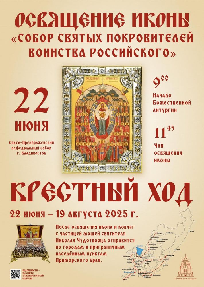 С 22 июня по 19 августа по благословению митрополита Владивостокского и Приморского Павла по территории Приморского края пройдёт Крестный ход с иконой «Собор покровителей воинства российского».