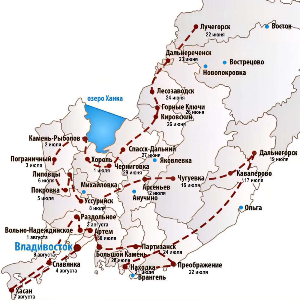 Торжественное освящение иконы состоится 22 июня, в День памяти и скорби, в Спасо-Преображенском соборе. Затем икона отправится в почти двухмесячный путь, во время которого побывает в каждом храме 12 городов и 27 населённых пунктов Приморья. Перед святым образом будут совершаться богослужения и молебны, в перерывах между которыми икона посетит приграничные воинские части и подразделения.