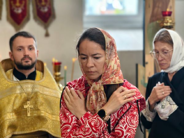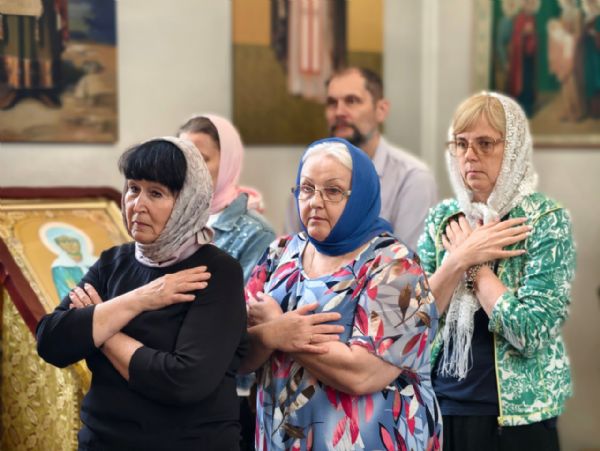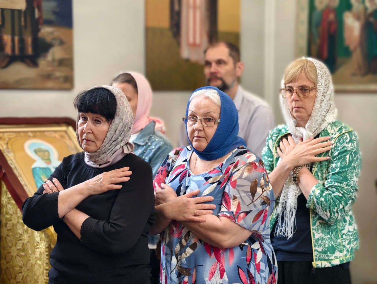 За богослужением молились прихожане и гости храма. Песнопения Литургии исполнил хор храма под управлением регента Анны Сердюковой. Во время сугубой ектиньи молитву о Святой Руси прочёл иерей Михаил Тутаев.