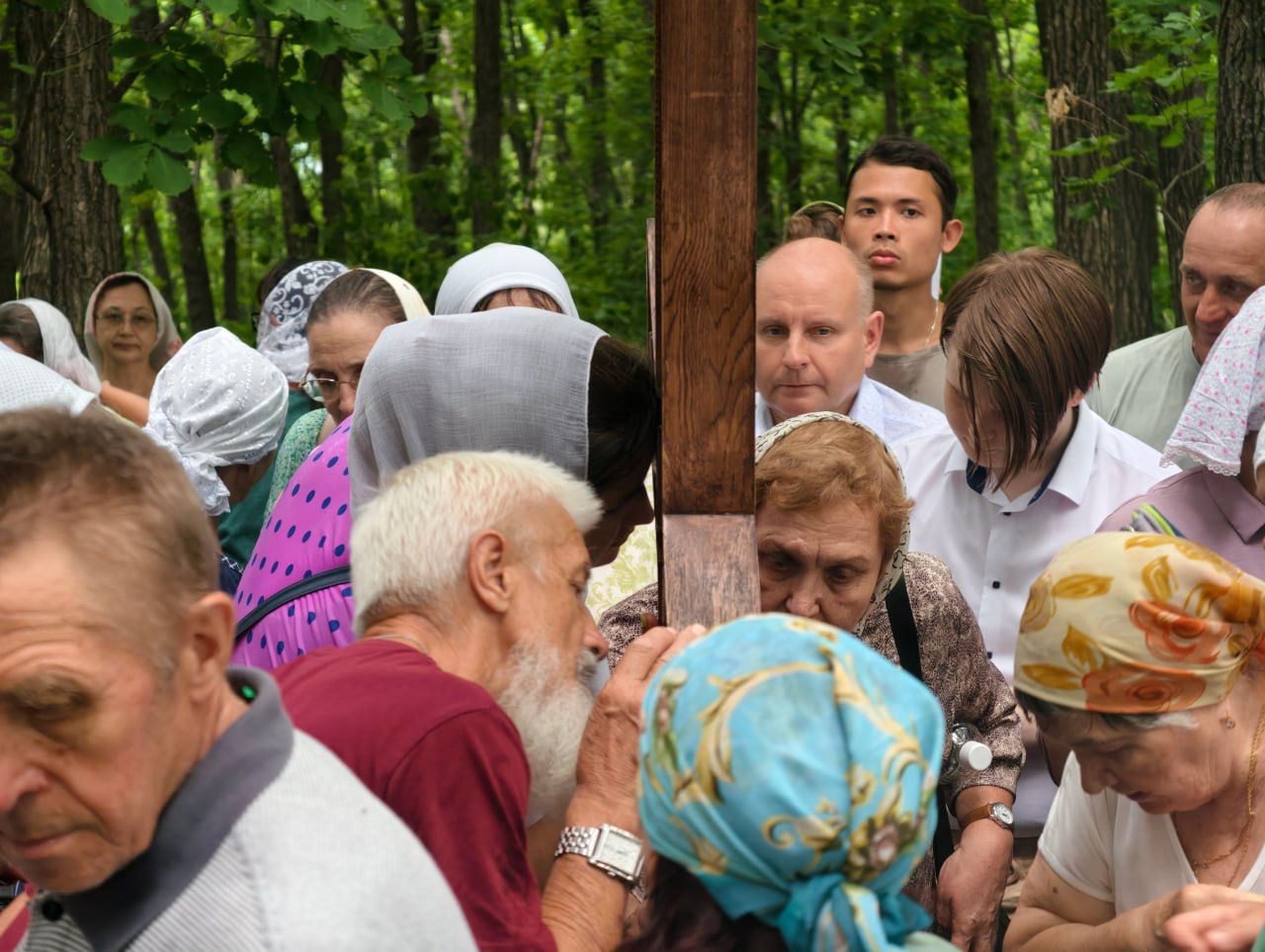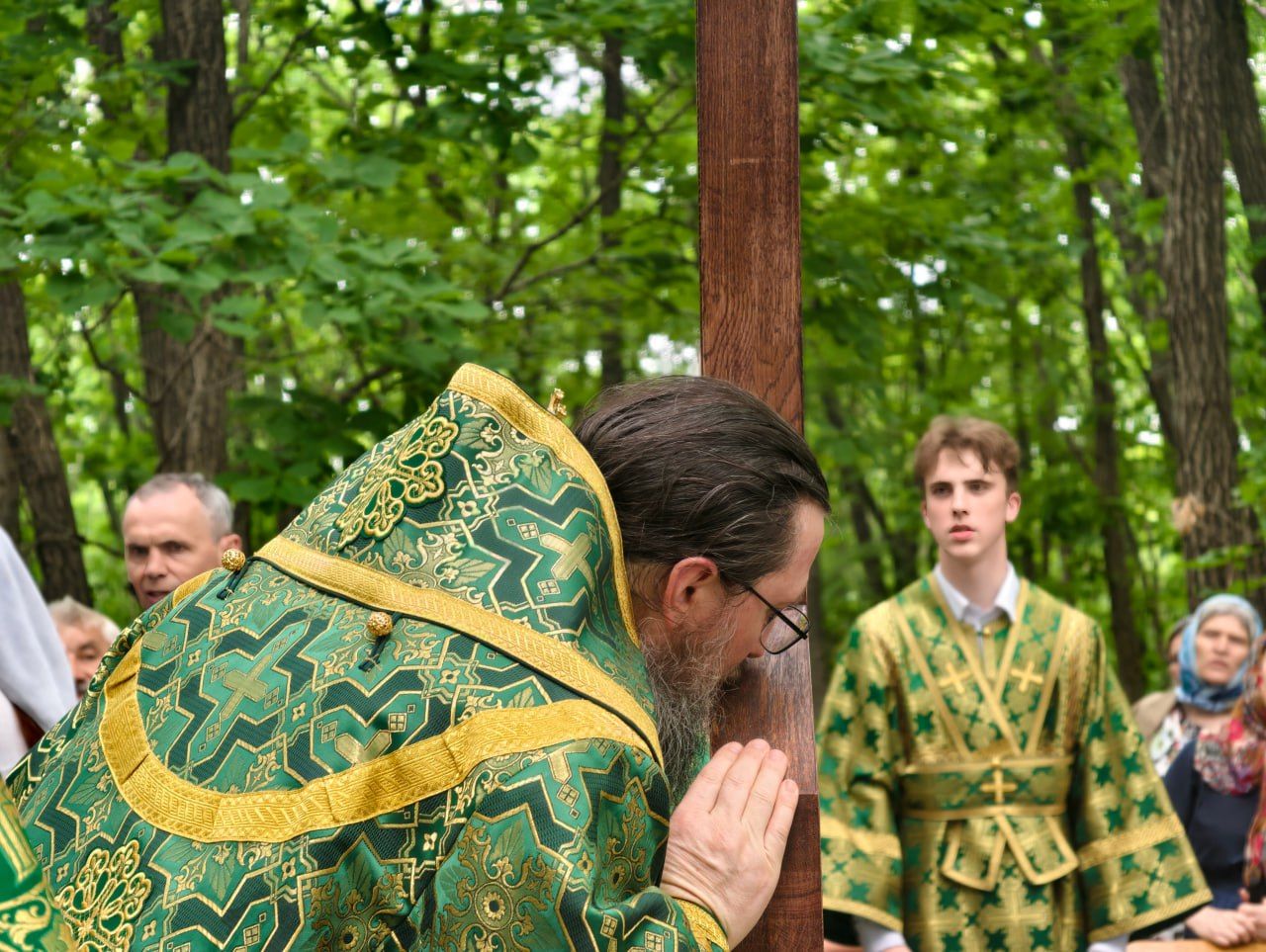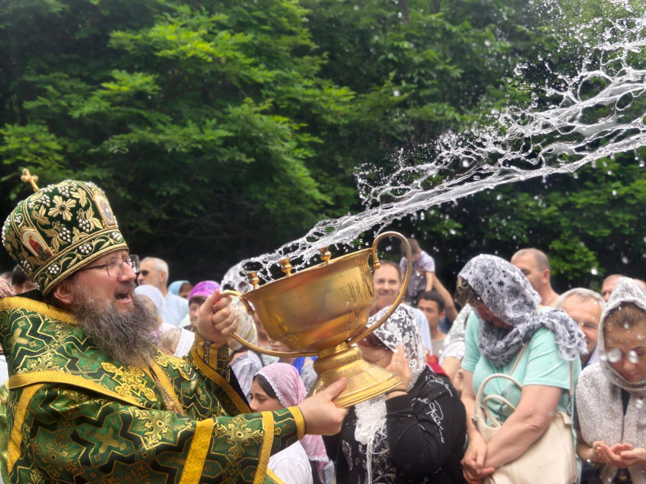 По окончании Литургии архипастырь, духовенство и миряне совершили молитвенное шествие к святому источнику Тихона Калужского. Здесь владыка Павел совершил водосвятный молебен, и по устоявшейся традиции, щедро окроплял верующих святой водой. Некоторым посчастливилось принять освящение целым потоком.
