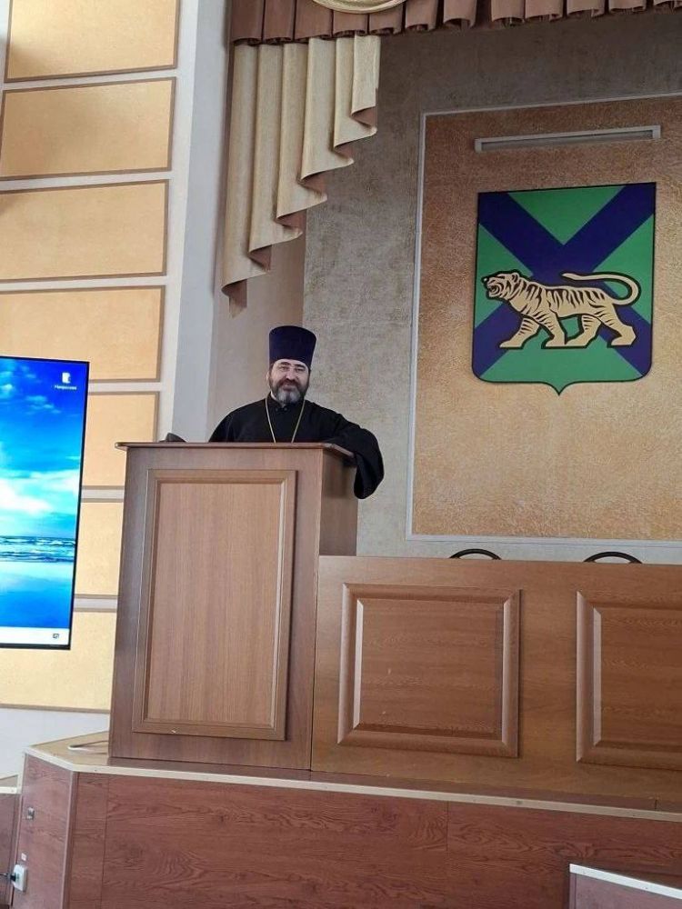 11 декабря в администрации г. Уссурийска состоялась встреча протоиерея Андрея Машанова, благочинного Уссурийского благочиния, и помощника настоятеля храма Покрова Пресвятой Богородицы г. Уссурийска Кирилла Елфимова с руководителями образовательных организаций Уссурийского городского округа в рамках проекта «Час директора».