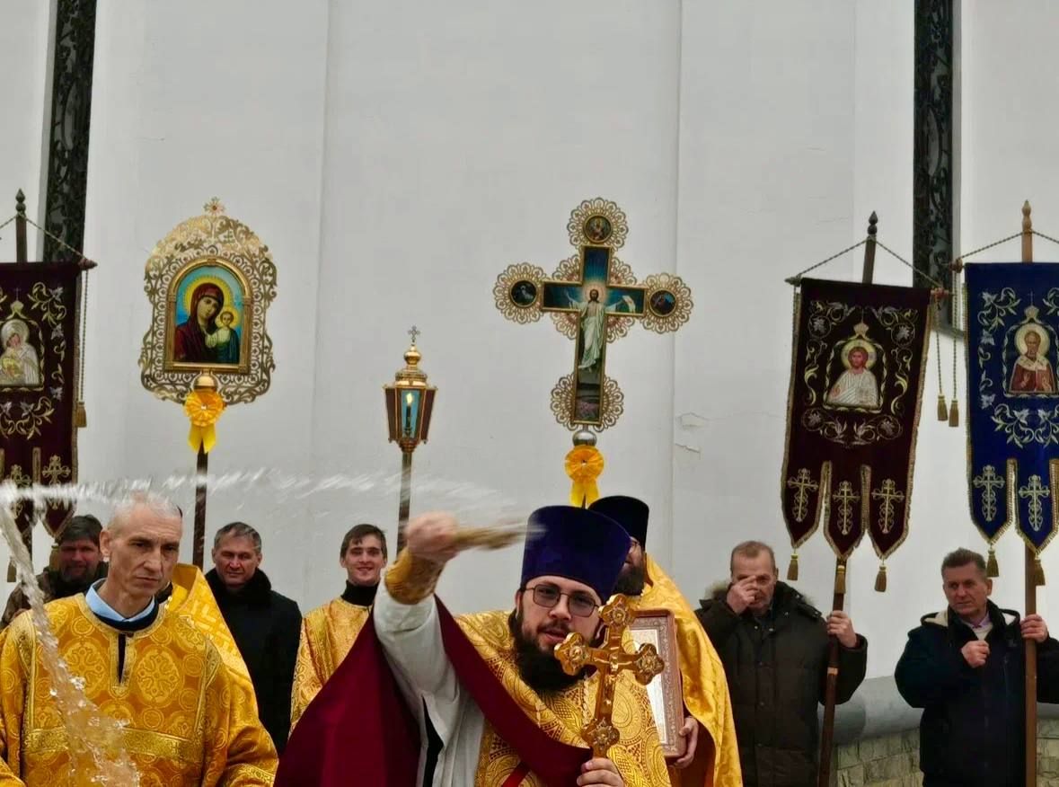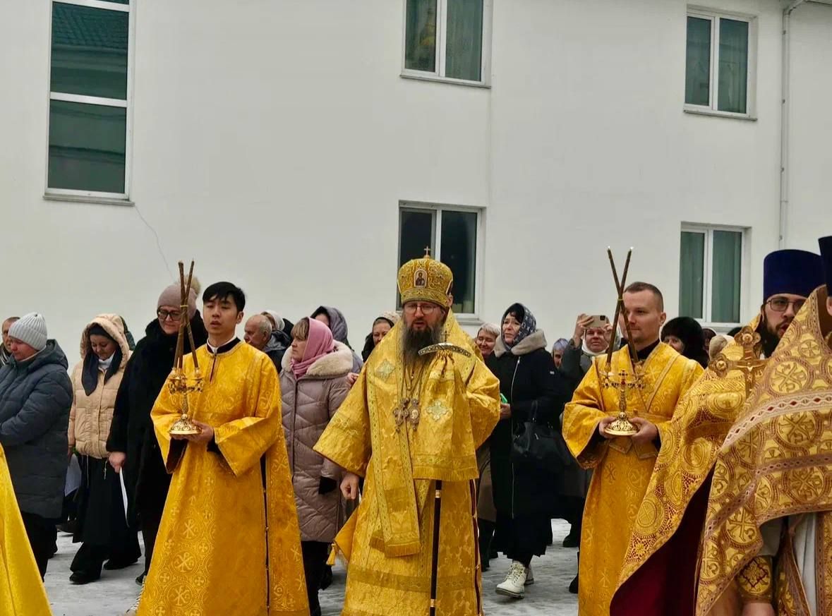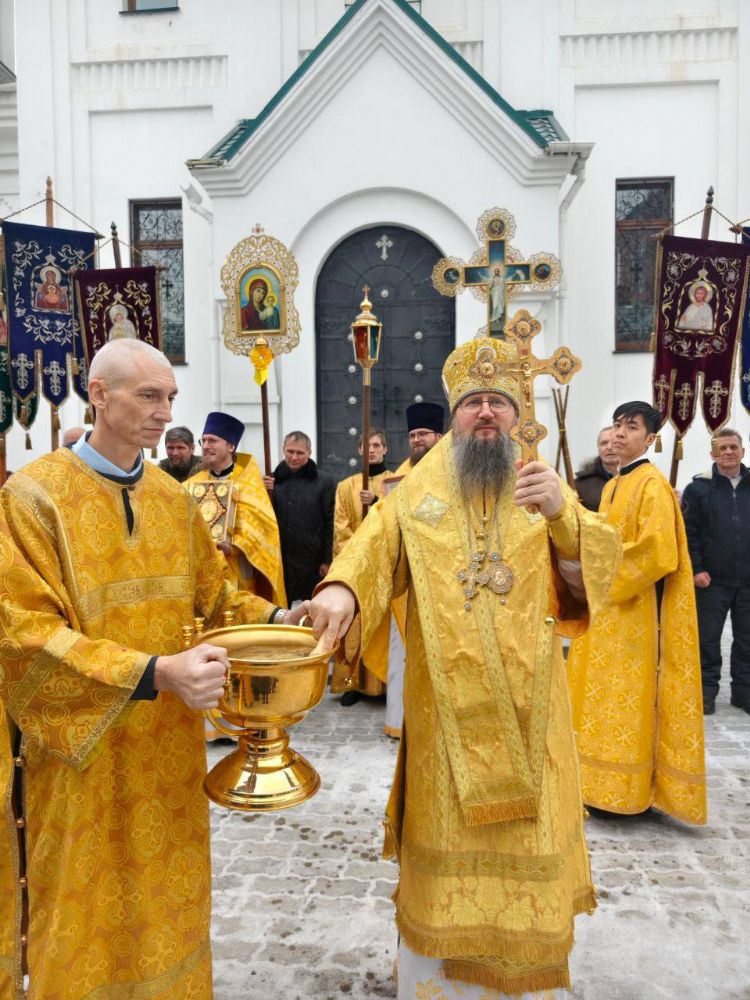 По окончании Литургии митрополит Павел, духовенство и прихожане совершили крестный ход вокруг храма, во время которого верующих окропляли святой водой.