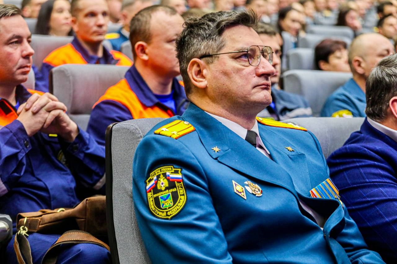 Затем с приветственным словом выступил Роман Чурсин. Роман Геннадьевич поздравил своих подчиненных и коллег с Днем спасателя РФ и юбилеем МЧС. Он выразил благодарность ветеранам ведомства за их многолетний плодотворный труд и передачу своего опыта новому поколению спасателей.