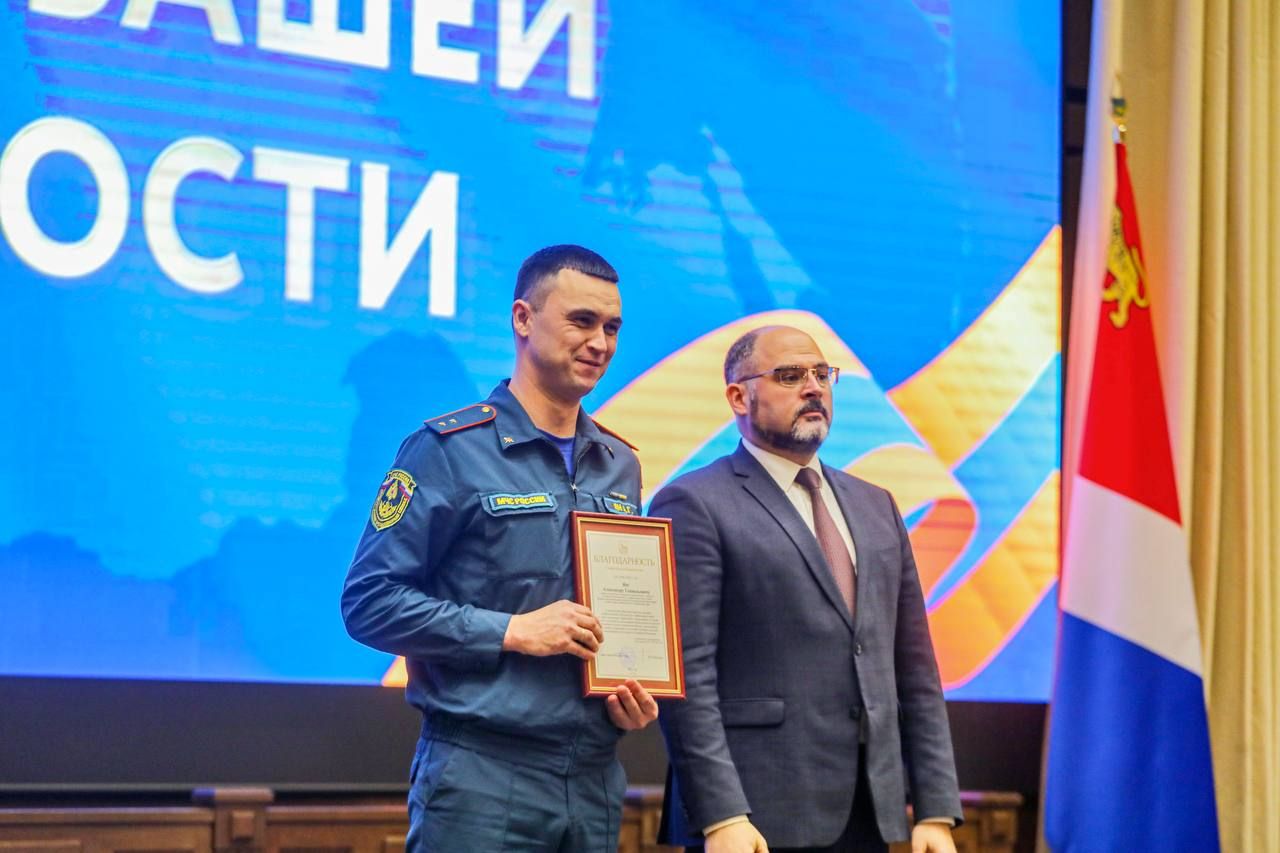 26 декабря в Большом зале Правительства Приморского края состоялось торжественное собрание в честь Дня спасателя Российской Федерации и 35-летия МЧС России. На мероприятии присутствовали: митрополит Владивостокский и Приморский Павел, исполняющий обязанности губернатора Приморского края Дмитрий Мариза, глава г. Владивостока Константин Шестаков, начальник Главного управления МЧС России по Приморскому краю генерал-лейтенант Роман Чурсин, командующий Тихоокеанским флотом ВМФ России Виктор Лиина и другие почетные гости.