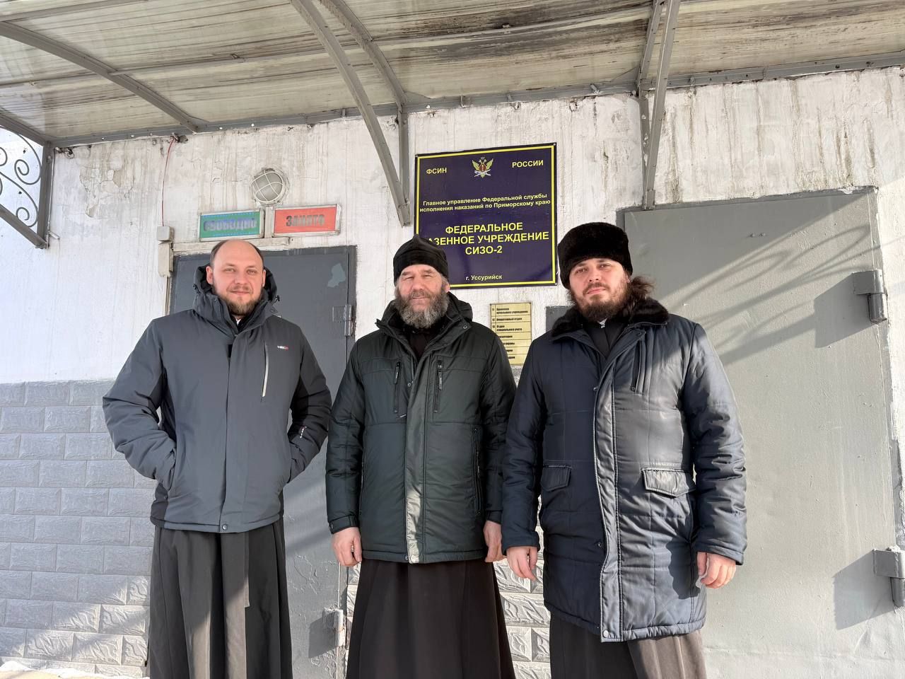 15 января иерей Владимир Плотников, помощник начальника ГУФСИН России по Приморскому краю по организации работы с верующими и председатель Межрелигиозной рабочей группы (МРГ) при ГУФСИН, совместно с иереем Дионисием Ищенко, членом МРГ, совершили рабочую поездку в следственные изоляторы г. Уссурийска (СИЗО-2 и СИЗО-3).