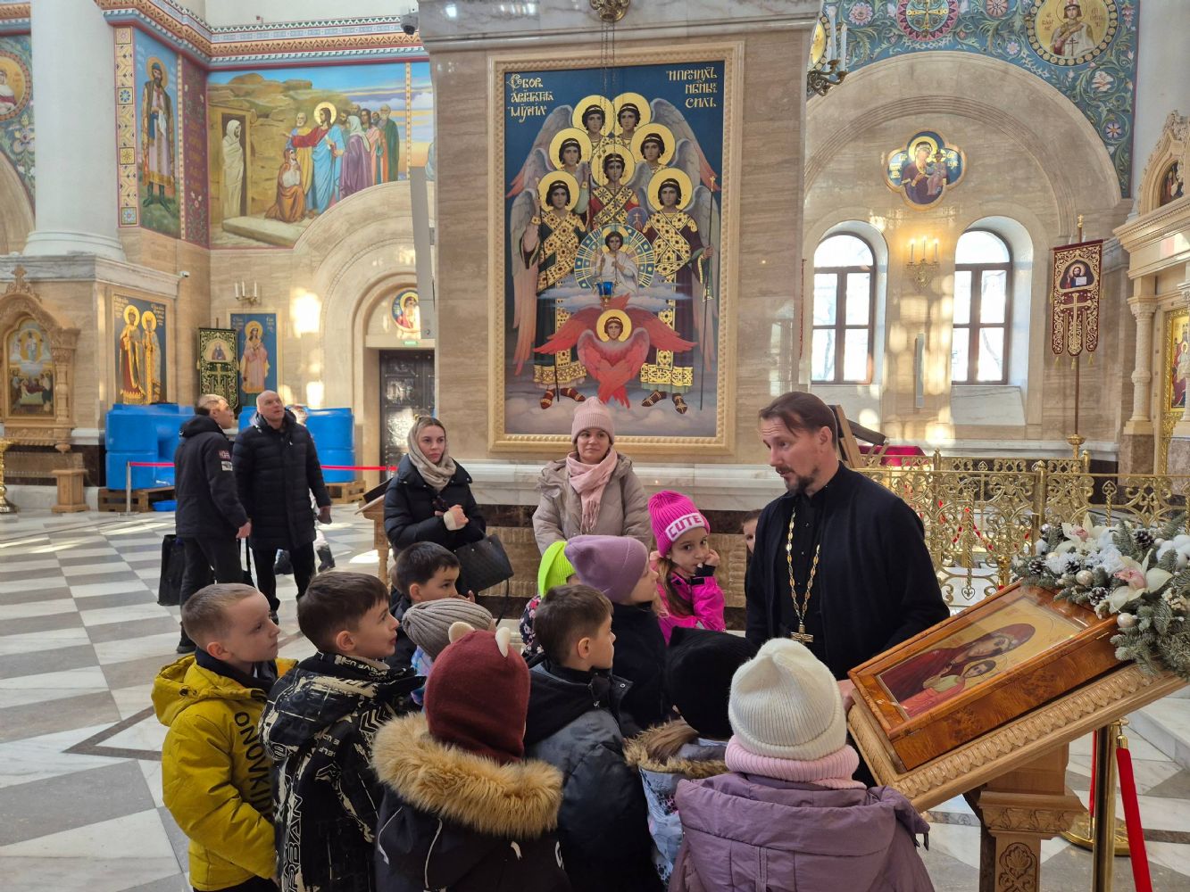 28 января учащиеся 1-го класса МБОУ «Начальная общеобразовательная школа № 10» г. Владивостока посетили Спасо-Преображенский кафедральный собор. Встретил юных гостей клирик собора иерей Димитрий Винокуров.