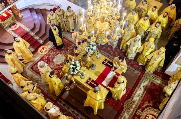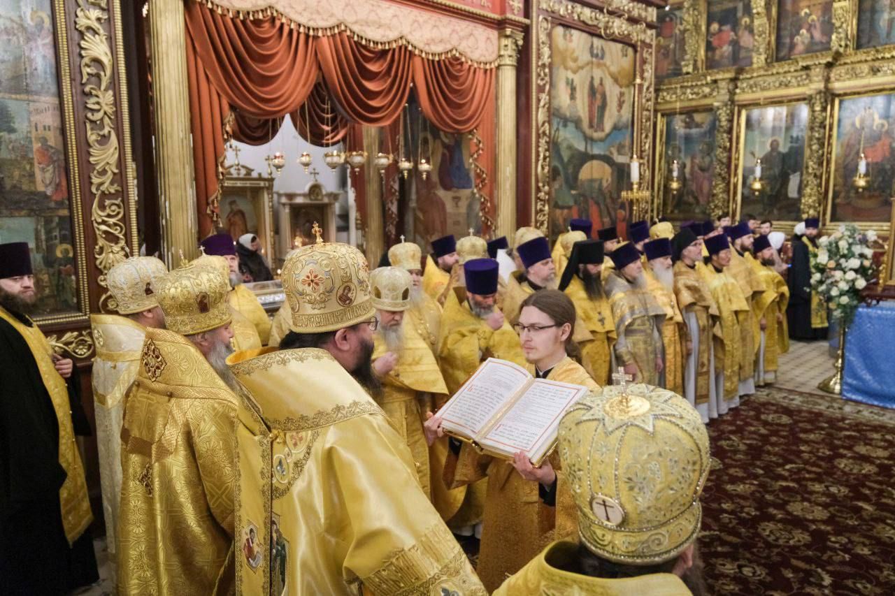 В этот день в Свято-Троицком кафедральном соборе города Пскова была совершена Божественная литургия. Богослужение совершали: глава Псковской митрополии митрополит Псковский и Порховский Матфей, митрополит Хабаровский и Приамурский Артемий, митрополит Сыктывкарский и Коми-Зырянский Филипп, митрополит Самарский и Новокуйбышевский Феодосий, митрополит Астраханский и Камызякский Никон, митрополит Владивостокский и Приморский Павел, митрополит Екатеринодарский и Кубанский Василий, архиепископ Карагандинский и Шахтинский Севастиан, архиепископ Салехардский и Новоуренгойский Николай, архиепископ Анадырский и Чукотский Ипатий, епископ Рыбинский и Романово-Борисоглебский Вениамин, епископ Арсеньевский и Дальнегорский Гурий, епископ Биробиджанский и Кульдурский Лука, епископ Кинешемский и Палехский Иларион, епископ Югорский и Няганский Михаил, епископ Шуйский и Тейковский Иоанн, епископ Николаевский и Богородский Иннокентий, епископ Чимкентский и Туркестанский Хрисанф, викарий Салехардской епархии епископ Ноябрьский Феодосий, епископ Кудымкарский и Верещагинский Петр, епископ Нерчинский и Краснокаменский Макарий, епископ Великолукский и Невельский Варнава.
