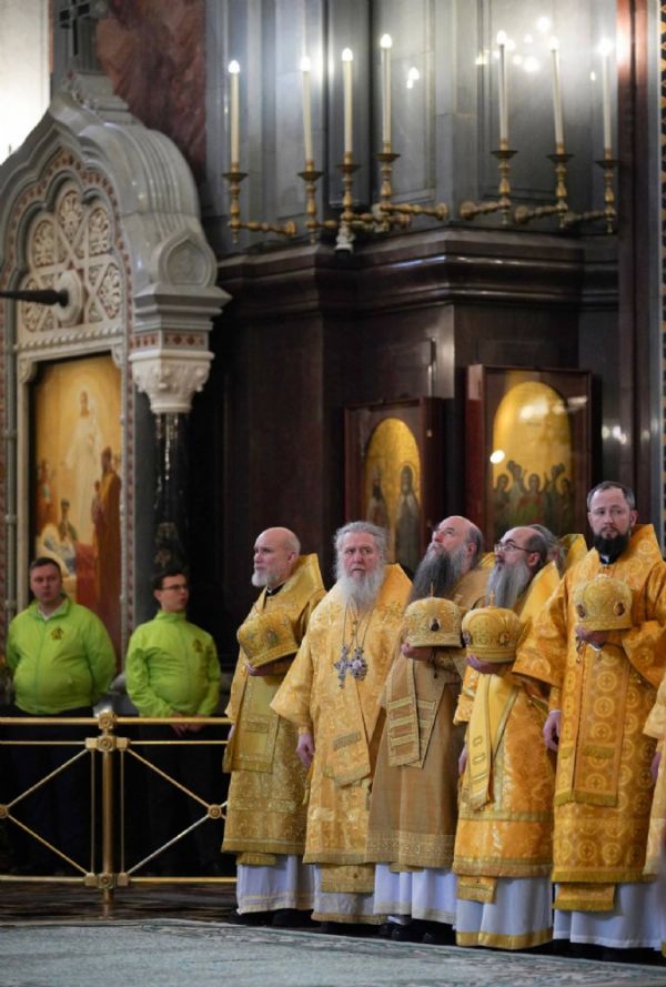 Также Святейшему Патриарху Кириллу сослужили: сослужили: митрополит Ювеналий (Поярков), митрополит Ташкентский и Узбекистанский Викентий, митрополит Санкт-Петербургский и Ладожский Варсонофий; митрополит Крутицкий и Коломенский Павел, митрополит Минский и Заславский Вениамин, митрополит Воскресенский Григорий, митрополит Владимирский и Суздальский Никандр, митрополит Волоколамский Антоний, митрополит Ростовский и Новочеркасский Меркурий; митрополит Смоленский и Дорогобужский Исидор; митрополит Каирский и Северо-Африканский Константин, митрополит Ханты-Мансийский и Сургутский Павел; митрополит Воронежский и Лискинский Леонтий и сонм архиереев Московского Патриархата.