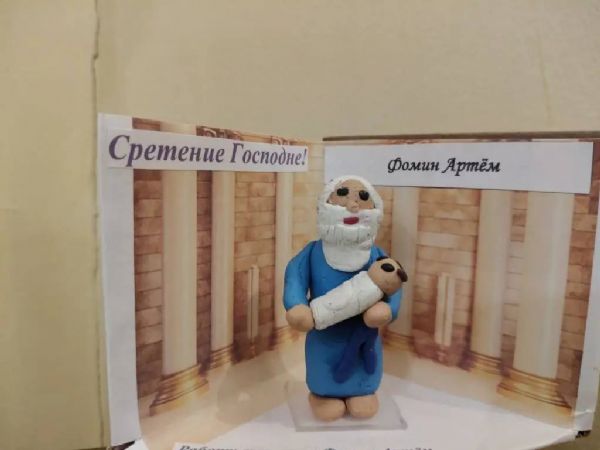15 февраля в храме Рождества Христова п. Славянка была организована выставка детских работ, приуроченная к празднику Сретения Господня. На экспозиции были представлены рисунки и поделки на заявленную тематику.