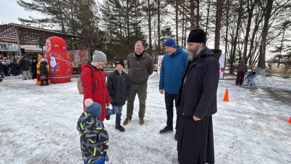 22 февраля, в Прощеное воскресенье, настоятель храма во имя Архистратига Михаила с. Михайловка иерей Владимир Яковченко и глава Михайловского муниципального округа Владимир Архипов посетили масленичные гулянья вместе с детьми воскресной школы на центральной площади села.