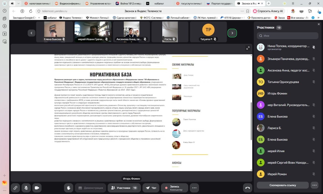 В рамках проекта «Помним историю, сохраняем традиции» прошло онлайн-обучение по программе духовно- нравственного воспитания "Имя России"»Программа реализуется храмом святого благоверного князя Александра Невского при МГИМО, настоятель протоиерей Игорь Фомин. В качестве основы программы используются выдающиеся исторические личности, внесшие существенный вклад в формирование и укрепление российской государственности, и являющие собой высокий личностный духовно-нравственный жизненный пример для воспитания современной молодежи.