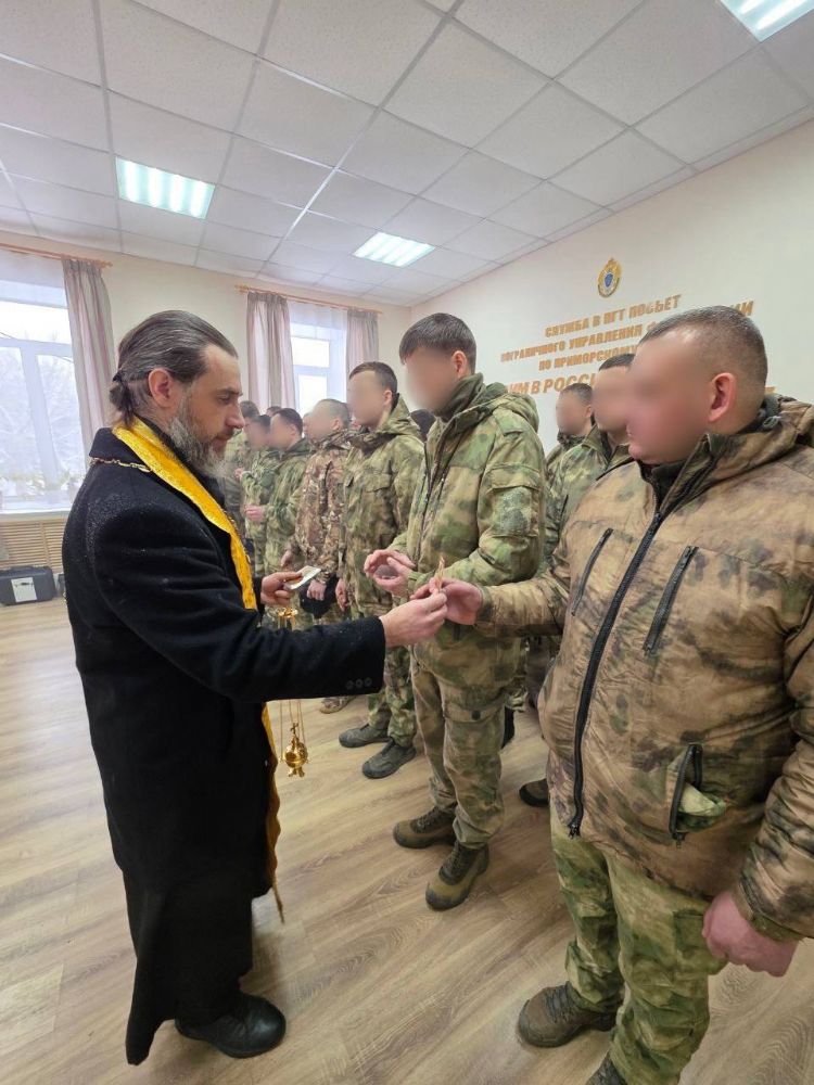 Духовно напутствовал пограничников настоятель храма Иверской иконы Божией Матери п. Зарубино иерей Алексий Синенко. Батюшка совершил чин молебного пения ко Господу Богу о воинах, идущих на брань. По окончании богослужения отец Алексий благословил каждого из воинов и окропил их святой водой.