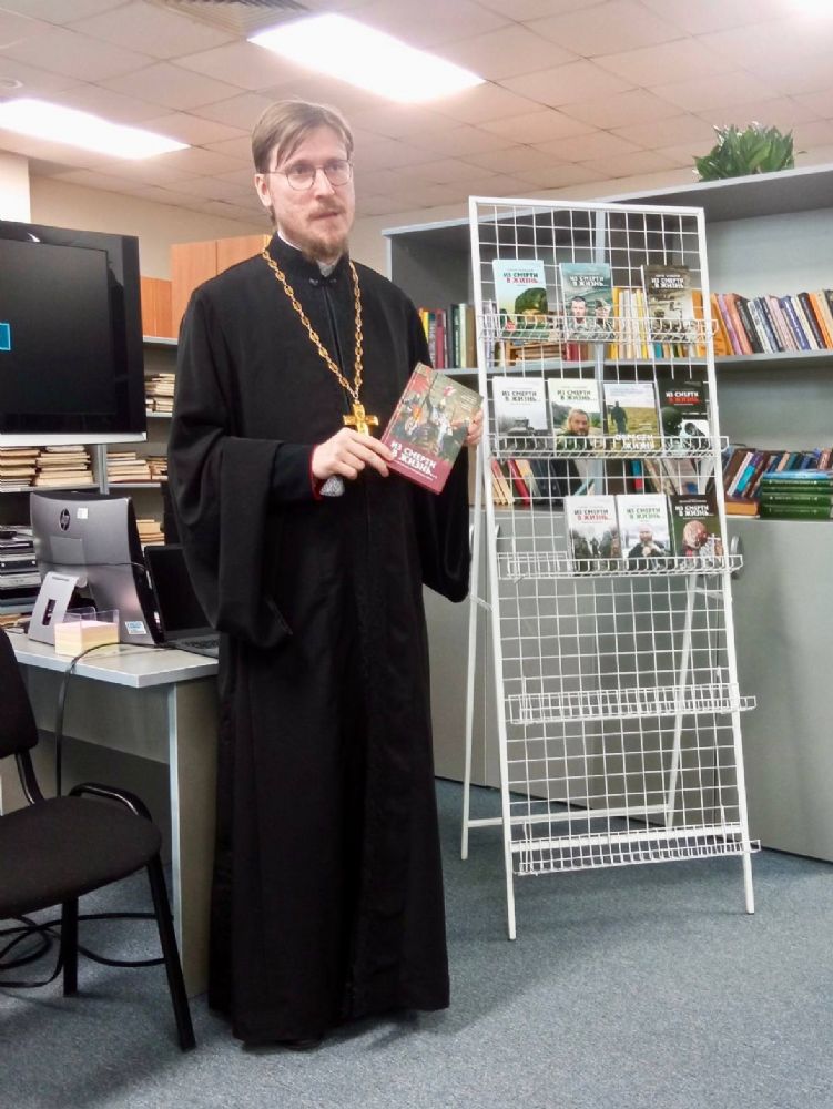 В завершение встречи батюшка преподнес в дар библиотеке кафедры цикл книг Сергея Галицкого и протоиерея Димитрия Василенкова «Из смерти в жизнь».