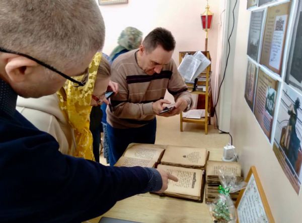 После докладов гости праздника с большим интересом посмотрели вторую часть фильма митрополита Вениамина (Пушкаря) «Крещение Руси». По завершении просмотра участники поделились своими впечатлениями. Затем матушка Иоанна обратила внимание всех на старинные книги XVII века, представленные на выставке: канонник, псалтирь и месяцеслов. Эти уникальные издания вызвали неподдельный интерес у присутствующих.