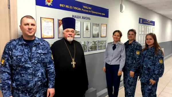 19 марта настоятель храма Вознесения Господня с. Спасское протоиерей Владимир Капитанюк посетил УФИЦ № 4 ФКУ ИК-33 ГУФСИН России по Приморскому краю. Всего на встрече присутствовало 47 осужденных и сотрудников учреждения.