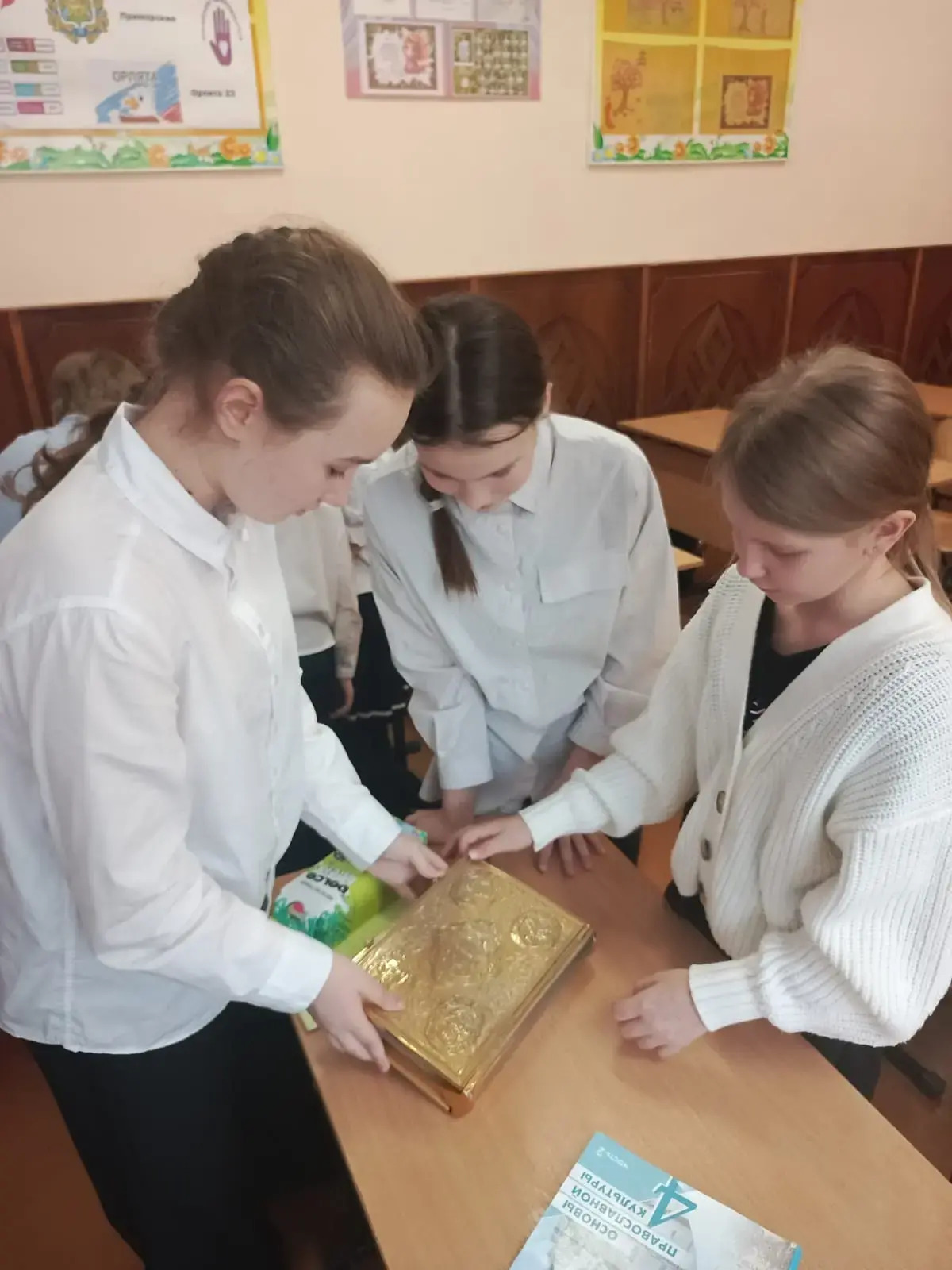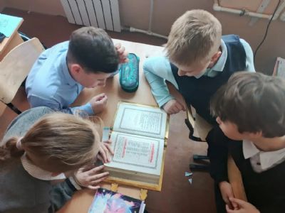 Урок прошел в рамках модуля «Основы Православной культуры». Учащиеся 4 класса узнали о первом книгепечатнике на Руси, о первых книгах, напечатанных Иванов Федоровым и Петром Мстиславцем, а также смогли подержать в руках и почитать богослужебные книги современного издания и издания царского периода.