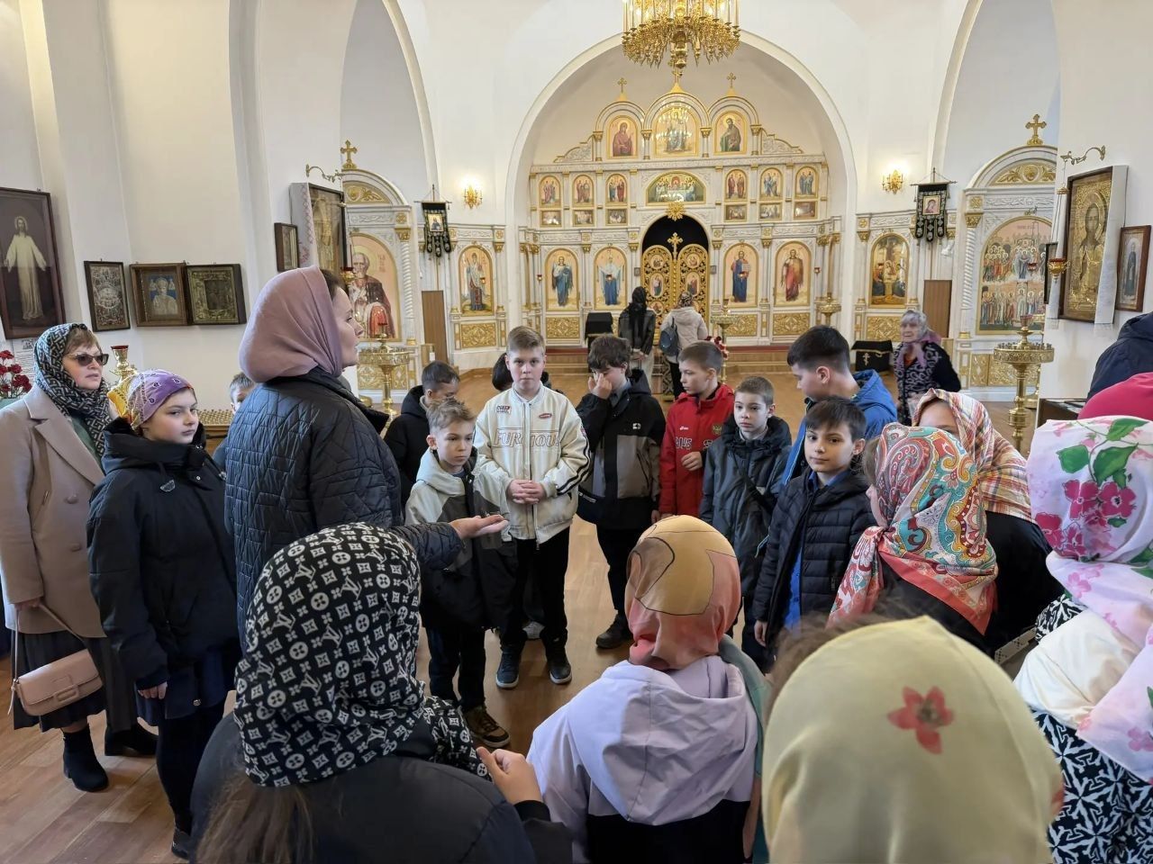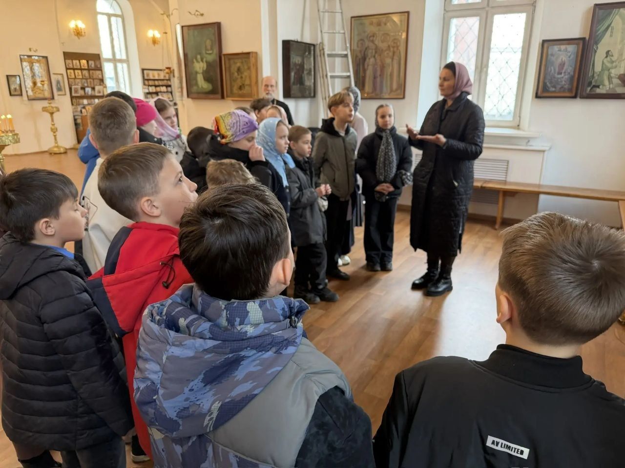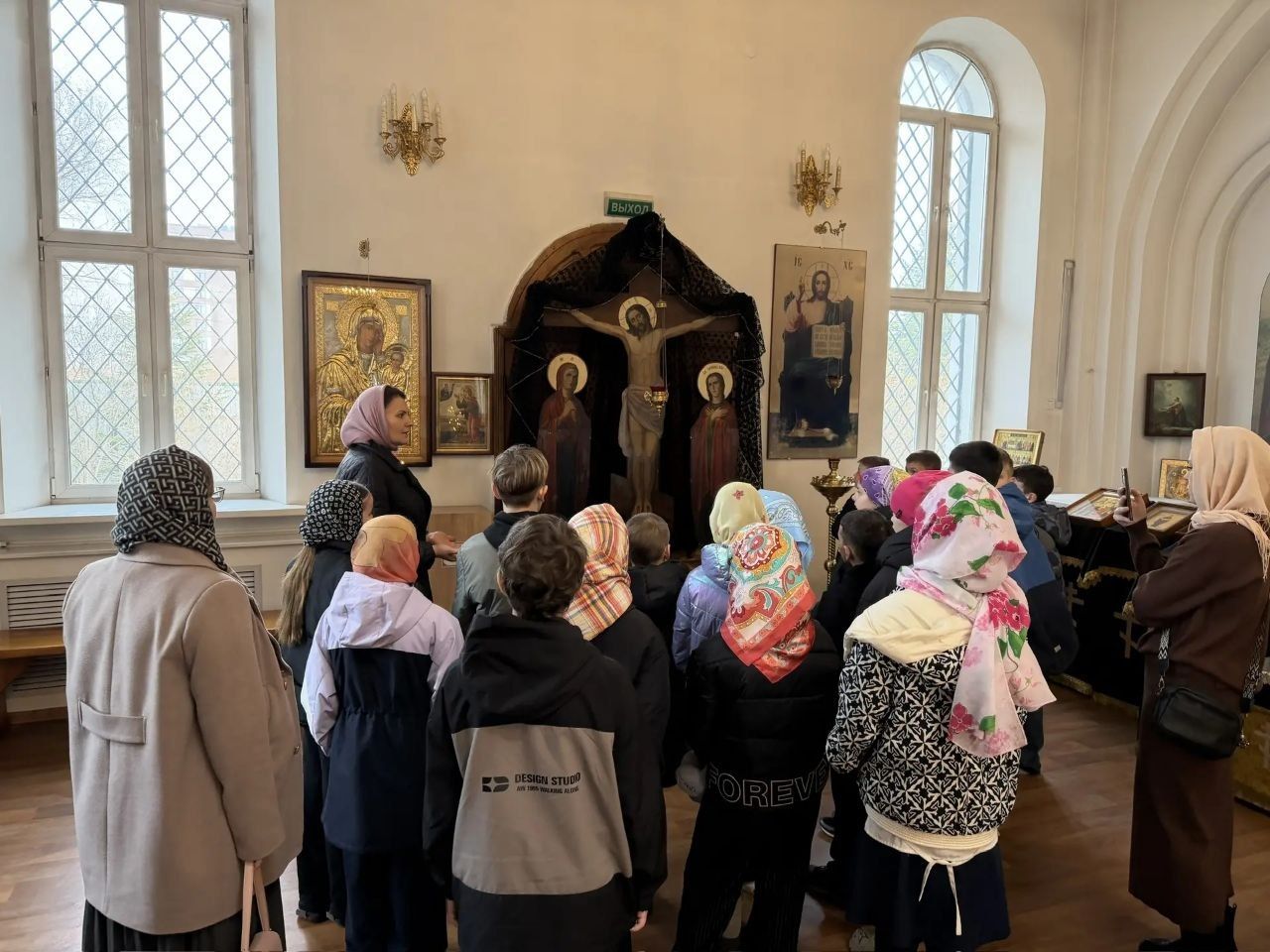 Преподаватель рассказала об устройстве православного храма и его значении. Ребята с интересом рассматривали иконы, среди которых узнали прп. Сергия Радонежского, св. блгв. князя Александра Невского, вмч. Георгия Победоносца и других святых.