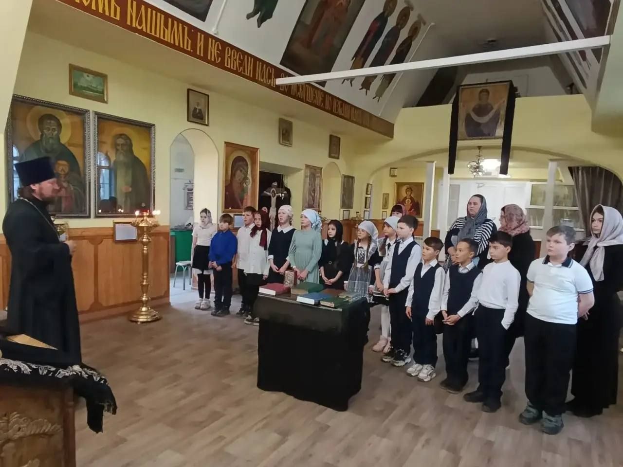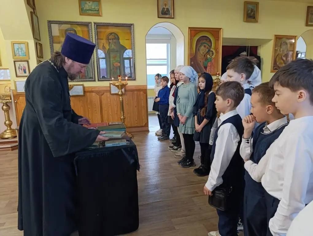 Особое внимание было уделено работе с детьми. В МБОУ СОШ №11 состоялась встреча с четвероклассниками и учителями, а в центре «Интеллект» регулярно проходят уроки для школьников. 24 марта отец Владимир провёл беседу с учениками 4-го класса о православной литературе, вере и истории России. В МБОУ ЦО «Притяжение» протоиерей Владимир провёл урок для 3–4-х классов на тему «Библия — письменный источник культуры». На этих встречах дети знакомились с историей возникновения христианства, развитием письменности, рассматривали богослужебные книги, читали на церковнославянском языке.