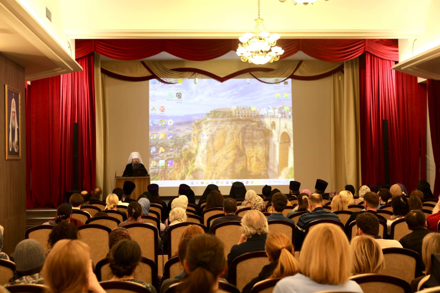 Владыка Павел познакомил присутствующих со своим духовным и жизненным путём, а также рассказал о просветительской и волонтёрской деятельности, которую он осуществлял на посту главы Ейской и Душабинской епархий. Особое внимание архипастырь уделил миссионерским проектам «Ейская землянка», «Ейская читальня» и «Детям о Церкви», отметив, как эти инициативы изменили жизни участников и способствовали их воцерковлению. Владыка также подчеркнул важность проведения экскурсий по храмам в рамках катехизаторской работы.