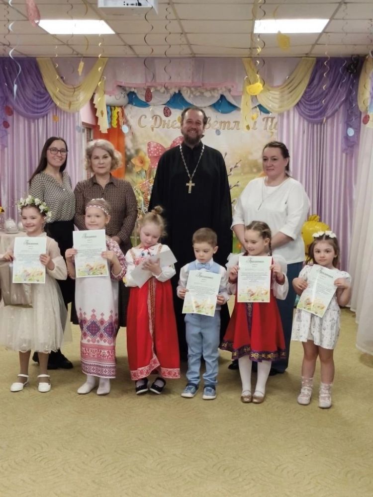 В числе почетных гостей был иерей Андрей Мельников, настоятель храма апостола Андрея Первозванного г. Владивостока. Батюшка обратился к участникам и гостям с приветственным словом, отметил важность подобных мероприятий для духовного воспитания детей и пожелал всем радости в эту Пасху.