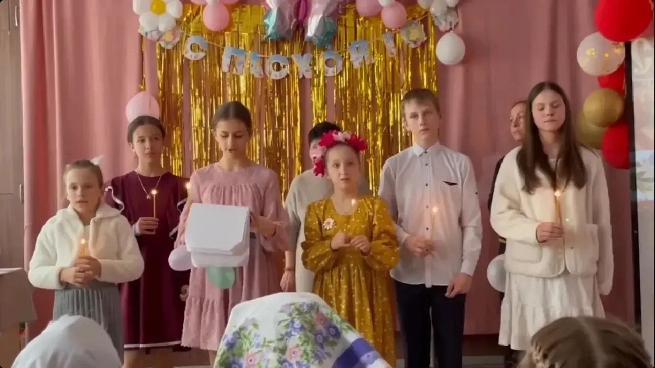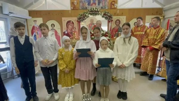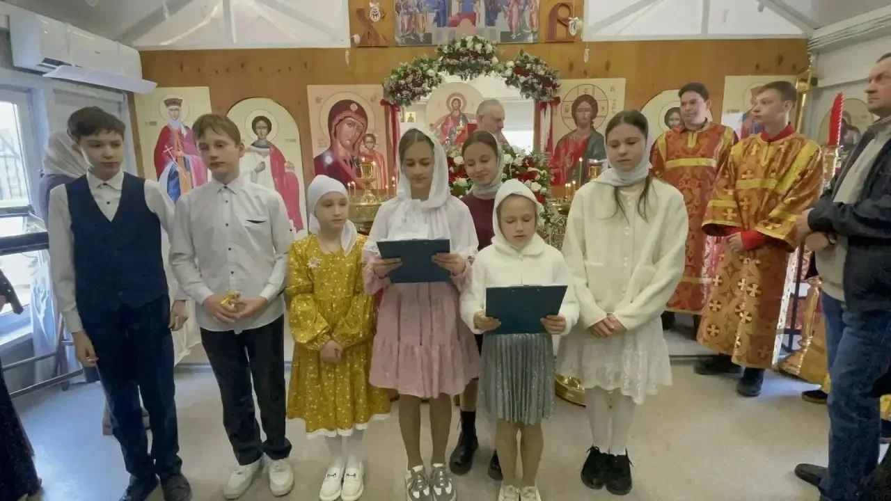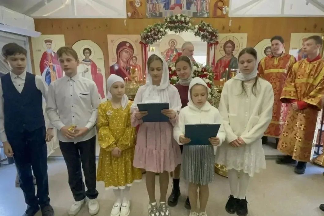 В Уссурийске ученики воскресных школ поздравили прихожан с Пасхой