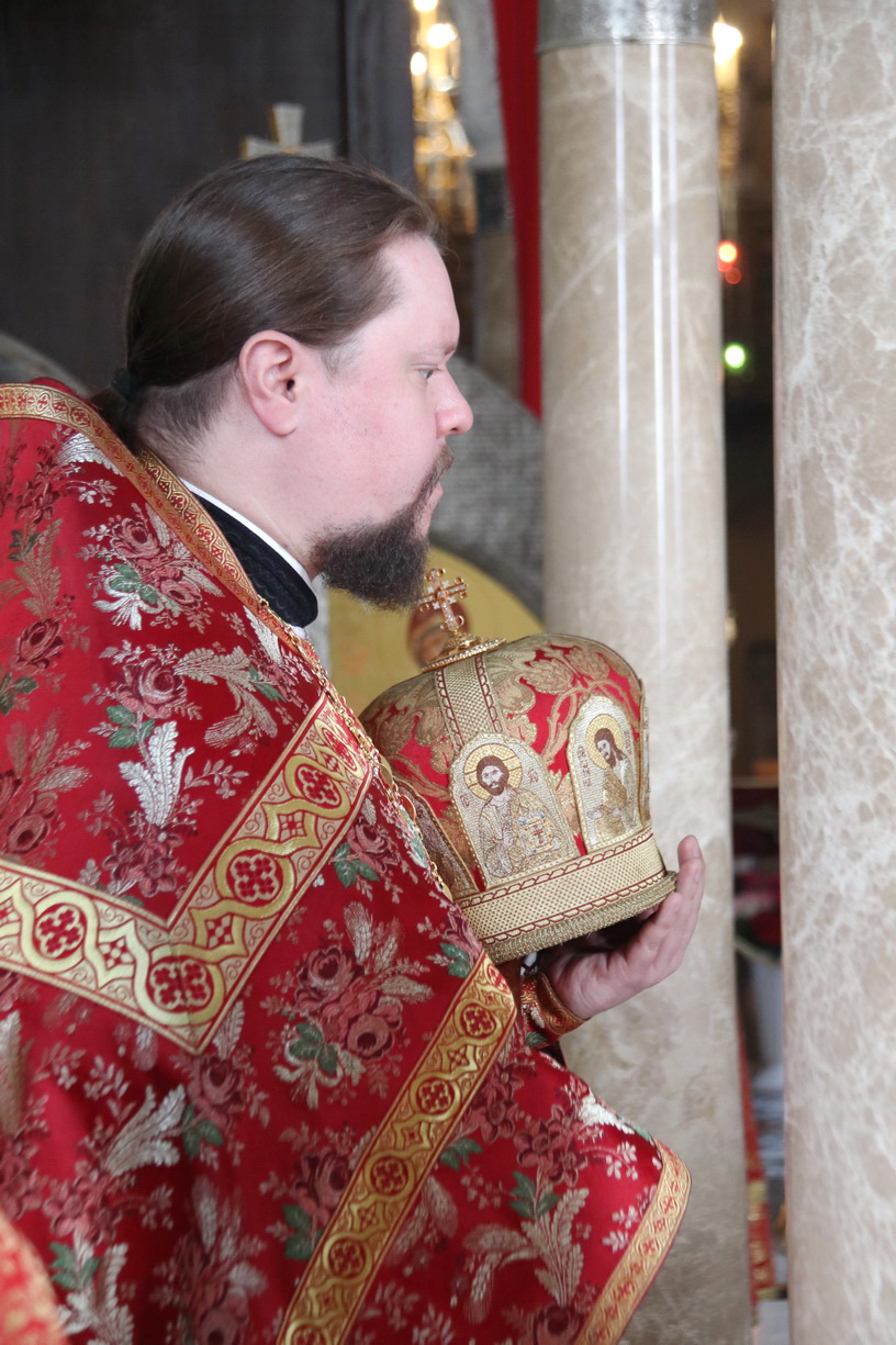 Его Преосвященству сослужили: иерей Иоанн Капитанюк, настоятель храма Рождества Христова; иерей Андрей Калнин, благочинный Казанского Кафедрального собора; иерей Андрей Попов и иеромонах Ермоген (Крещенко), клирики Казанского собора.