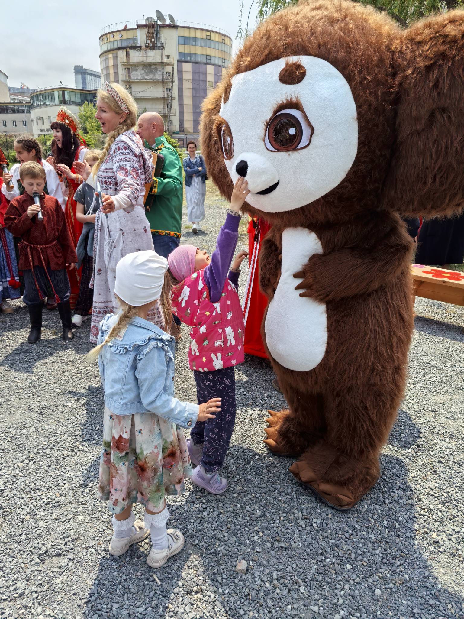 В конце праздника была уже традиционная раздача новых вещей от сети магазинов «Глория Джинс». И завершилось мероприятие вручением подарков и дружным пением песен под баян.