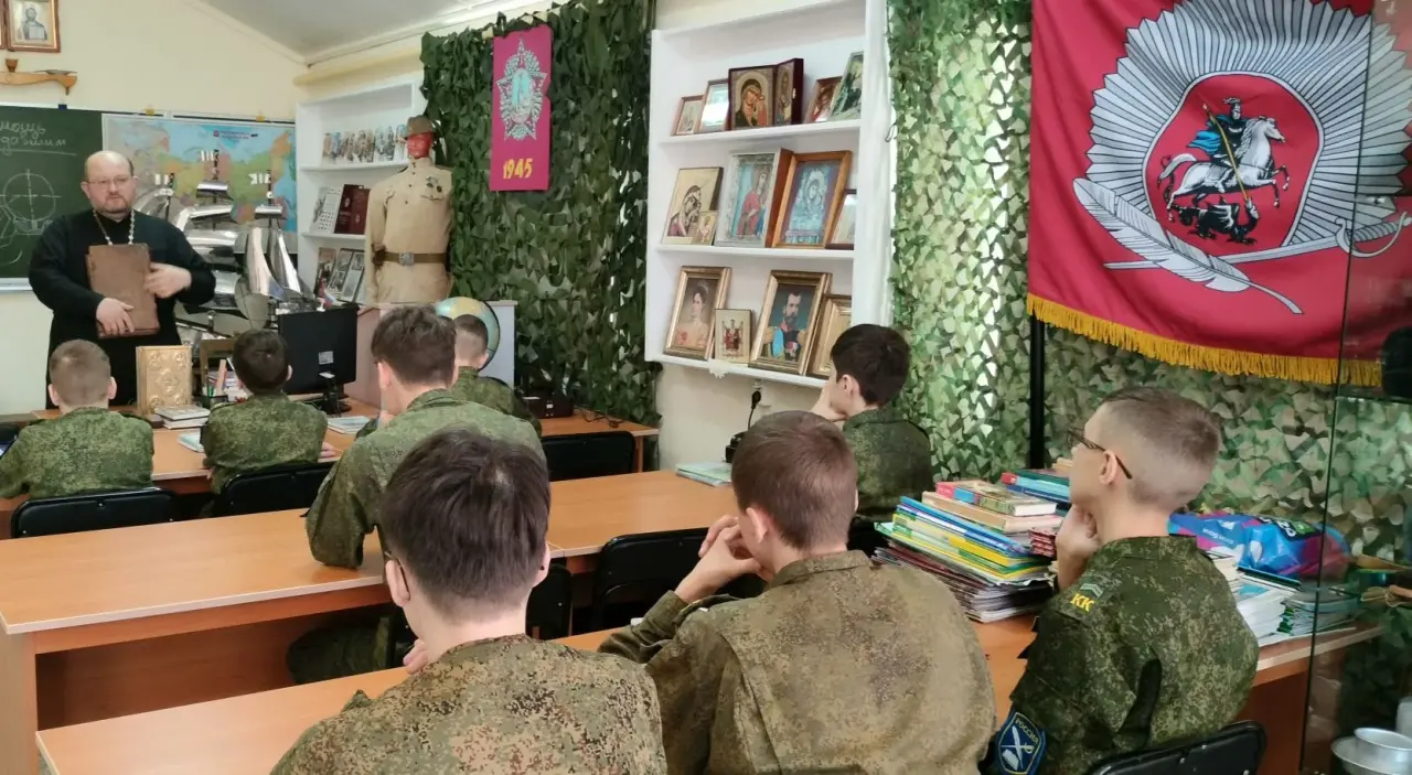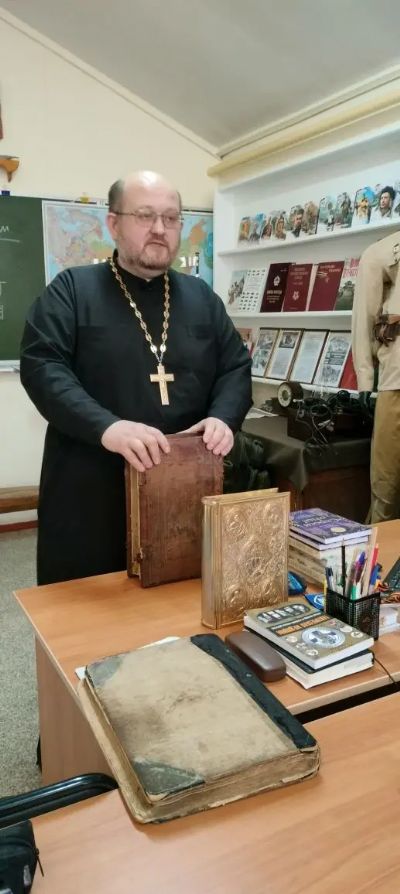 Священник рассказал кадетам Военно-патриотического клуба «СПАС» о первопечатнике Иване Федорове.