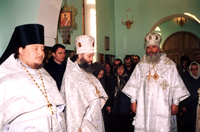 Торжественно, по церковному уставу владыка Вениамин освящает престол и храм. Ему сослужат архимандрит Иннокентий, игумен Сергий, иерей Григорий. Стройное пение клироса наполняет наши сердца. Приходским хором руководит раба Божья Инна.