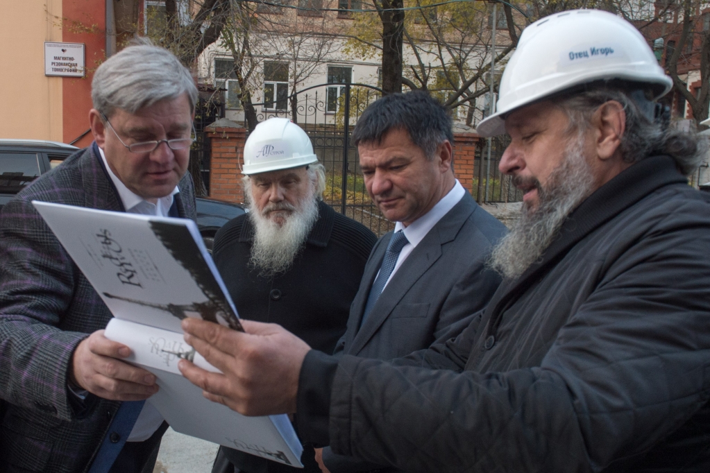 На стройплощадке Спасо-Преображенского кафедрального собора продолжаются работы. 28 октября ход возведения соборного храма Владивостока осмотрел новый глава региона — временно исполняющий обязанности губернатора Приморского края Андрей Тарасенко. Во встрече принял участие президент ПАО «ТИГР», финансирующего проект, Сергей Дарькин. Владивостокскую епархию на встрече представляли митрополит Владивостокский и Приморский Вениамин и секретарь епархии протоиерей Игорь Талько.