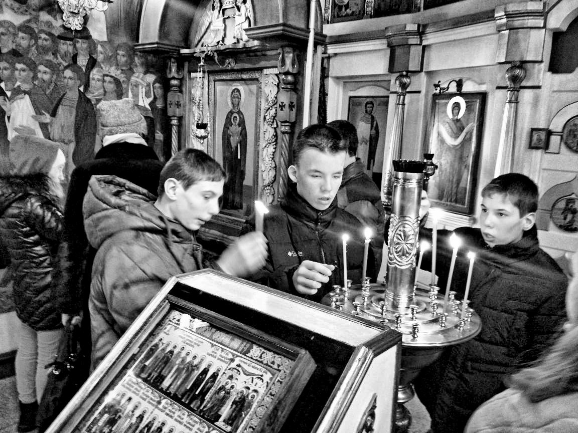На Масленицу православные волонтеры позвали детей из коррекционной школы к себе в гости — напоили горячим чаем с блинами, провели по храму. Сергей Владимирович Козлов, помощник руководителя Душепопечительского центра, показал иконы, рассказал о святынях. После чего ребята поднялись на колокольню и звонарь Покровского прихода Татьяна Довбенко разрешила маленьким гостям ударить в колокол.