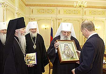 Позже в тот же день в резиденции Президента Российской Федерации в Ново-Огареве состоялась встреча В.В.Путина со Святейшим Патриархом Московским и всея Руси Алексием II и Первоиерархом Русской Зарубежной Церкви митрополитом Нью-Йоркским и Восточно-Американским Лавром. В беседе принимали участие митрополит Крутицкий и Коломенский Ювеналий, председатель Отдела внешних церковных связей Московского Патриархата митрополит Смоленский и Калининградский Кирилл, а также архиепископ Берлинский и Германский Марк (Русская Зарубежная Церковь).