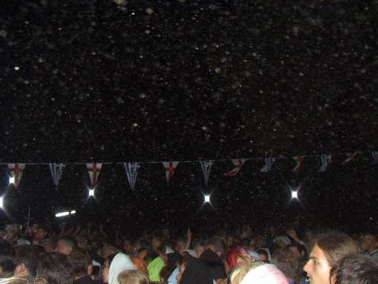 Ночь была безлунной. Молодой месяц рано скрылся. Причастие началось в три часа ночи. С первым причастником подул ветер и фактически из ниоткуда появилась туманная дымка и опустилась на приступающих к чаше. В лучах света от камер и фотоаппаратов четко были видны капли. Люди протягивали руки, чтобы прикоснуться к этому чудесному явлению, подставляли иконки. Потом рассказывали, что эти капельки оседают именно на той стороне, где изображение. У всех было радостное настроение.