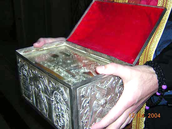 ковчежец с мощами св. Георгия Победоносца в Лидде (Святая Земля) - верху, гробница св. Георгия победоносца в Лидде.
