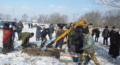 На земельном участке уже был совершен молебен, служение которого возглавил благочинный III округа Владивостокской епархии иерей Евгений Маляр, и установлен крест; присутствовали порядка 30 человек — местные жители и представители казачества.