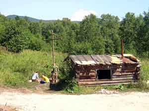 27 августа, суббота. Утром дождя тоже не было. Только временами морось. Помолились, позавтракали. Олег и Игорь выпустили в реку рыбу, которую вчера наловили, а умершую – засолили (они поймали несколько ленков, пеструшку, форель). Свернули лагерь и поехали в Малую Кему. Около 15.30 прибыли в село. Деревня поменьше Амгу, живет человек 800. Основана тоже староверами. Есть здесь пограничная и воинская части, 11-летняя школа. Недалеко - селение Великая Кема, но там сейчас никто не живет, и название указывает только на речку, что рядом с ней течет. До 1917 г. в Кеме был храм. Современный храм святого Архангела Божия Михаила воспринял имя прежней церкви, расположился в бывшем детском саде села. Здание внутри перестроили под церковь, сделали алтарь. Все очень просто, где-то даже по-детски просто. Алтарь здесь больше, чем в Тернее. Между престолом и восточной стенкой алтаря можно пройти. В алтаре одна икона на горнем месте, самописанная красками. Внутри храм чистый, светлый. На иконостасе много икон. Храм здесь начал действовать раньше, чем в Тернее. И община здесь прочная. Староста Валентина энергично все сделала своими руками. Есть клирос, все самоучки. Мы разместились здесь же, при храме. На кроватях, и полу, для чего к отбою надули свои матрацы. Отслужили всенощное бдение с акафистом Успению Божией Матери. Молилось на службе 10 человек. После ужина в храм зашел пьяный молодой человек 22 лет. Захотел посмотреть храм. Пытался буянить. Но я его встретил спокойно, отвечал на его вопросы. Потом долго слушал его рассказ о его неудачной личной жизни. Он успокоился, и я его проводил домой.