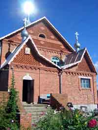 Освободился от трудов к 15 часам. Здесь же при храме сели с прихожанами обедать. В этом здании ранее был райвоенкомат. Потом его переоборудовали под церковь, но помещение маленькое. Алтарь размером примерно 5 м. в длину и 1, 8 м. в ширину. Жертвенник «миниатюрный», на нем едва помещаются сосуды, престол немного больше, но стоит вплотную к западной стене, так что вокруг него пройти нельзя и поэтому каждение совершал только на три стороны. В алтаре есть только напрестольное Евангелие и кадило, поэтому все нужно привозить с собой. Иконостас простенький в два ряда, иконы небольшие, бумажные. Пространство храма небольшое – примерно 3 х 5. Потолок низкий. Есть как бы притвор примерно 4 х 5 м. Есть небольшие комнатки для иконной лавочки, трапезной, отдыха священника. Над входом в храм стоит крест, купола нет. Храм в целом выглядит бедно. Первый раз здесь прошла служба в 1998 г. Но для районного центра сейчас этого помещения явно мало, поэтому весной 2005 г. архиепископ Вениамин освятил закладку нового храма, который будет рядом со старой церковью. После обеда посмотрели место строительства, где сейчас стоит крест. Староста и прихожане ждут постоянного настоятеля.