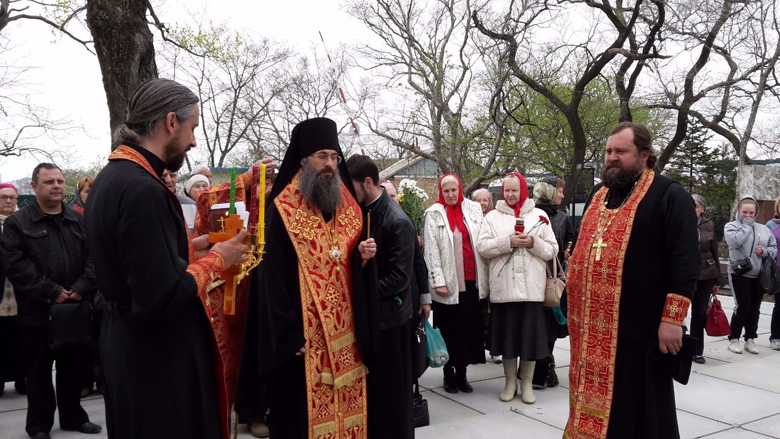 Владивосток. Викарий Владивостокской епархии епископ Уссурийский Иннокентий в день Радоницы совершил панихиду в Успенском храме. Затем владыка по традиции отправился на Морское кладбище.