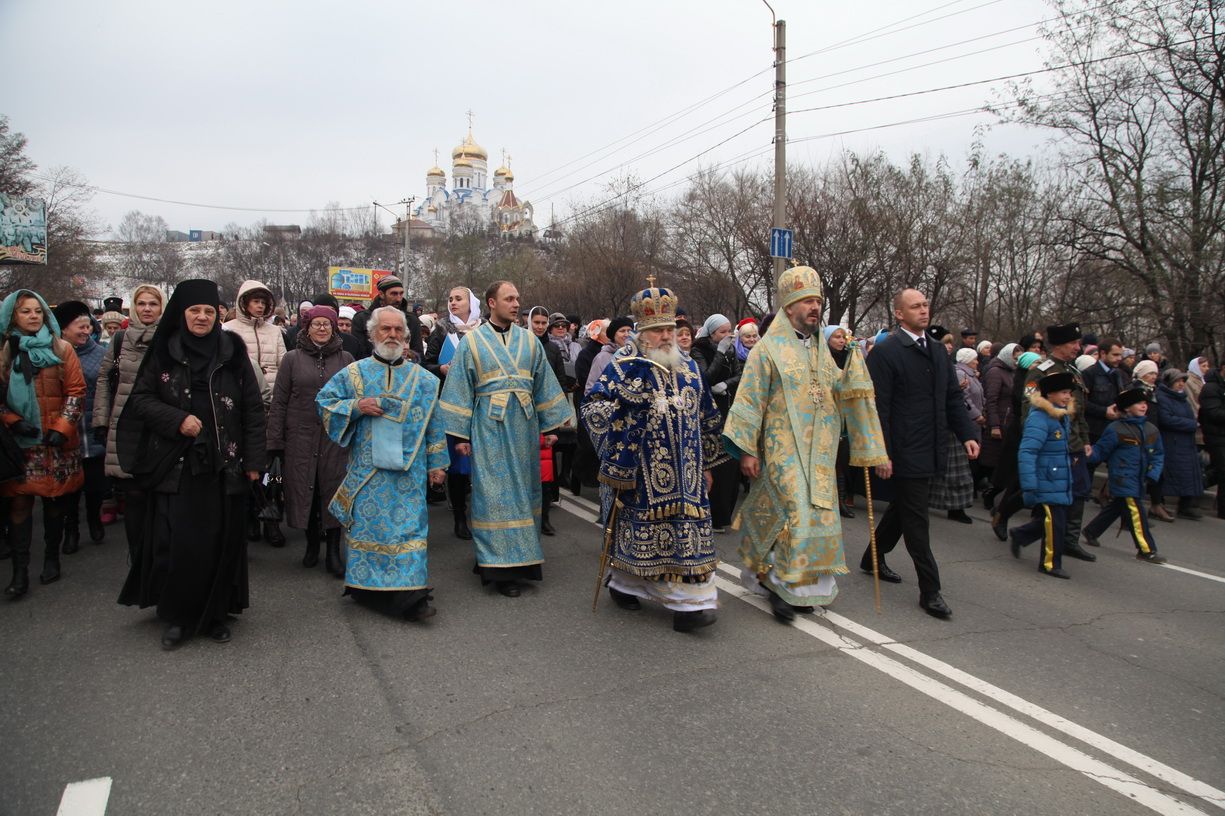Митрополит Владивостокский и Приморский Вениамин возглавил служение Божественной литургии в Казанском кафедральном соборе города Находка. Его Высокопреосвященству сослужил епископ Находкинский и Преображенский Николай и сонм духовенства Приморской митрополии. По совершении богослужения от Казанского собора по Находкинскому проспекту прошел праздничный Крестный ход — к Муниципальному центру культуры (ДКМ), где затем состоялся совместный концерт творческих коллективов Находки и Архиерейского хора Казанского собора.