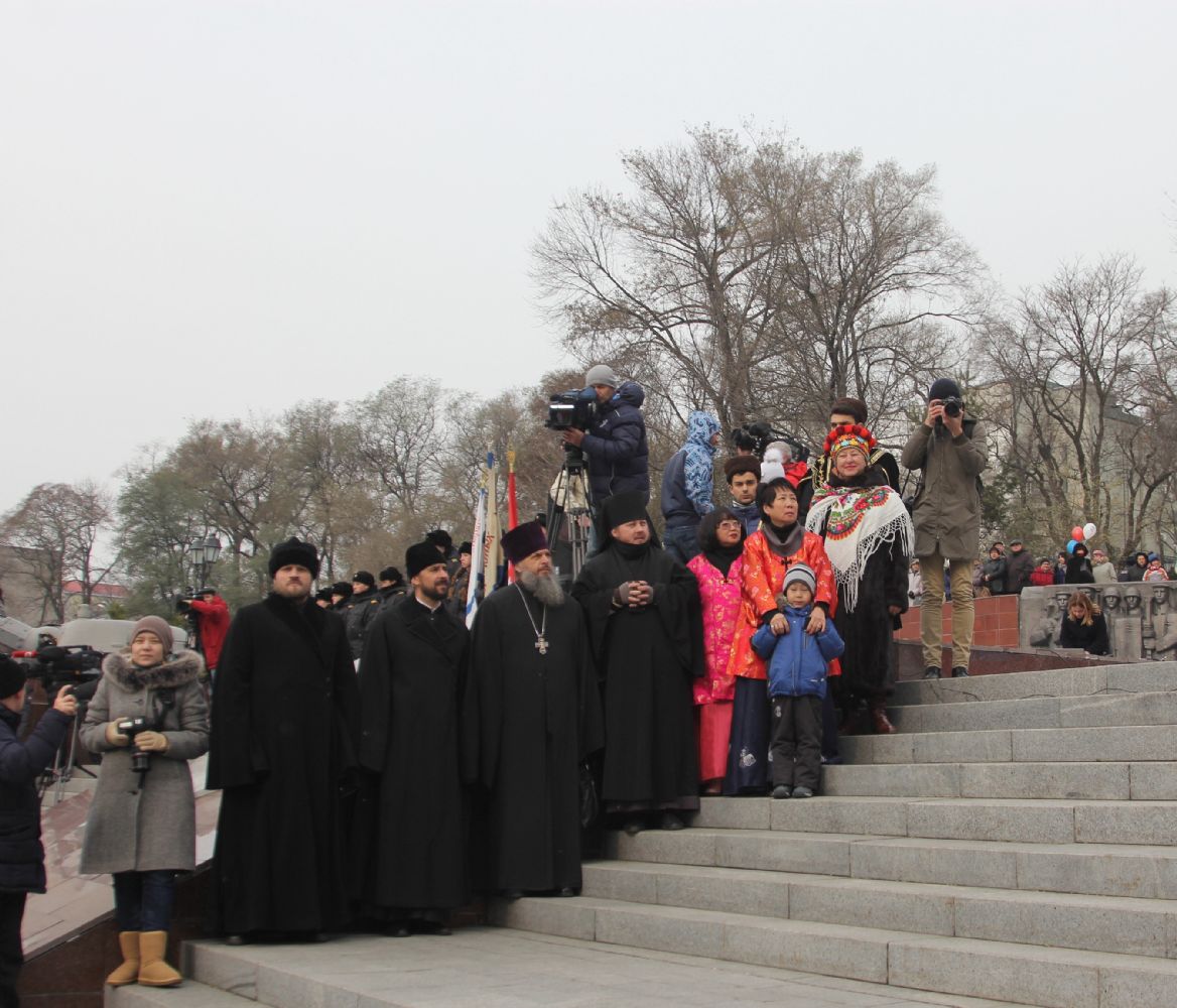 Викарий Владивостокской епархии епископ Уссурийский Иннокентий совершил праздничное богослужение в Успенском храме Владивостока. Затем Его Преосвященство принял участие в торжественном открытии митинга-концерта «Мы едины!», собравшего на Корабельной набережной Владивостока, у мемориала «Боевая слава ТОФ» сотни участников — представителей власти, депутатского корпуса, общественных объединений и творческих коллективов краевого центра, журналистов ведущих телеканалов и информагентств.